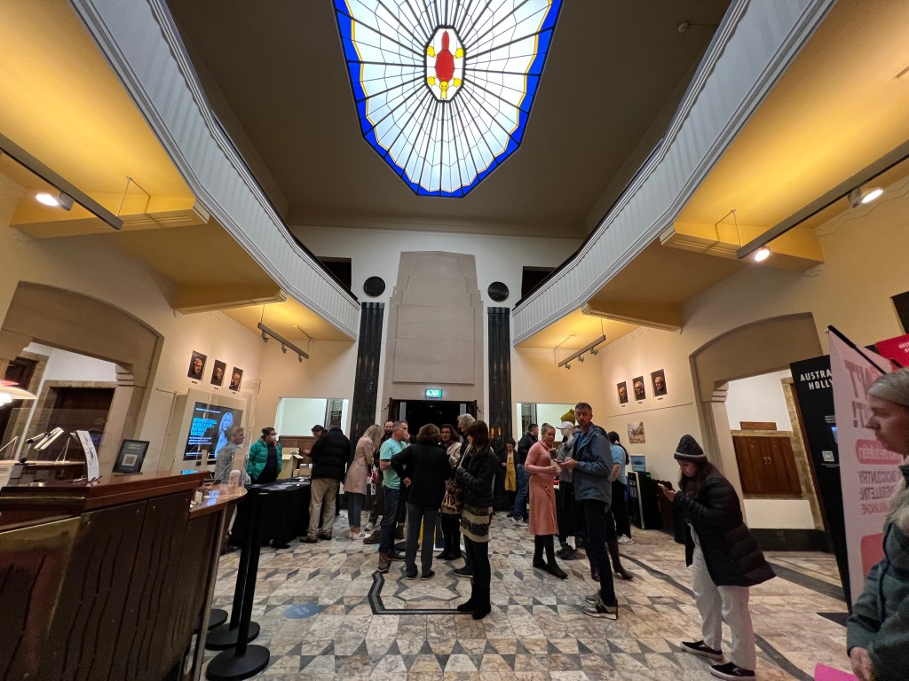 When you enter the small foyer of this rather grand heritage-listed building (now the National Film and Sound Archive of Australia), past various motifs of Aussie flora and fauna (see the platypus on the ceiling), you will soon notice twelve busts of scholarly, long-dead men evenly spaced along the walls above you. Appropriate to the setting, each bust is stuck to the wall along a coronal slice through the head, likening it (with a couple of exceptions) to a death mask — a bleak foreboding visage. All a bit sinister for a building that welcomes visitors to a wonderful variety of film and sound exhibitions: archival, arthouse and adventure.