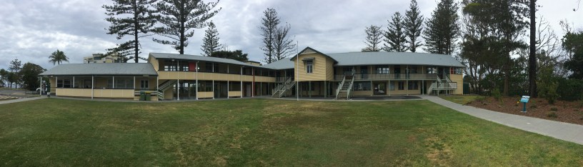 This charming weatherboard educational establishment sits atop a pleasant hill overlooking the sea and is reached by steps leading up from a small foreshore carpark. It actually owes its existence to the arrival in Australia in January 1919 of Spanish flu with troops returning from the Great War. As the pandemic spread from Melbourne up the east coast, quarantine measures became enforced including a halt to all travel north across the New South Wales-Queensland border. One of many quarantine camps was set up at Point Danger in Tweed Heads and border crossings were patrolled by mounted police. The “stranded Queenslanders” even had their own committees to represent them against the state authorities. Immediately north of the border, the children of Coolangatta were suddenly left without a school, until this time having had to travel south across the border to the Tweed Public School. The local Town Hall was used as a school and, although quarantine restrictions were lifted in July 1919, parents lobbied the state government for new premises. In October the following year the Coolangatta State School was officially opened. In 1977 the school was moved to its current site nearby. The buildings were later restored and transformed into the Kirra Hill Community and Cultural Centre.